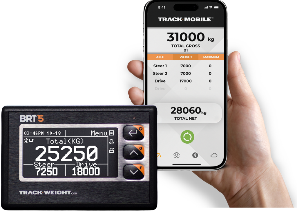 Combined with the TrackWeight TRACKMOBILE* mobile app, the new BRT5 Series 4 scale remotely displays all load information from the truck to the loader operator’s or third party’s cellphone.